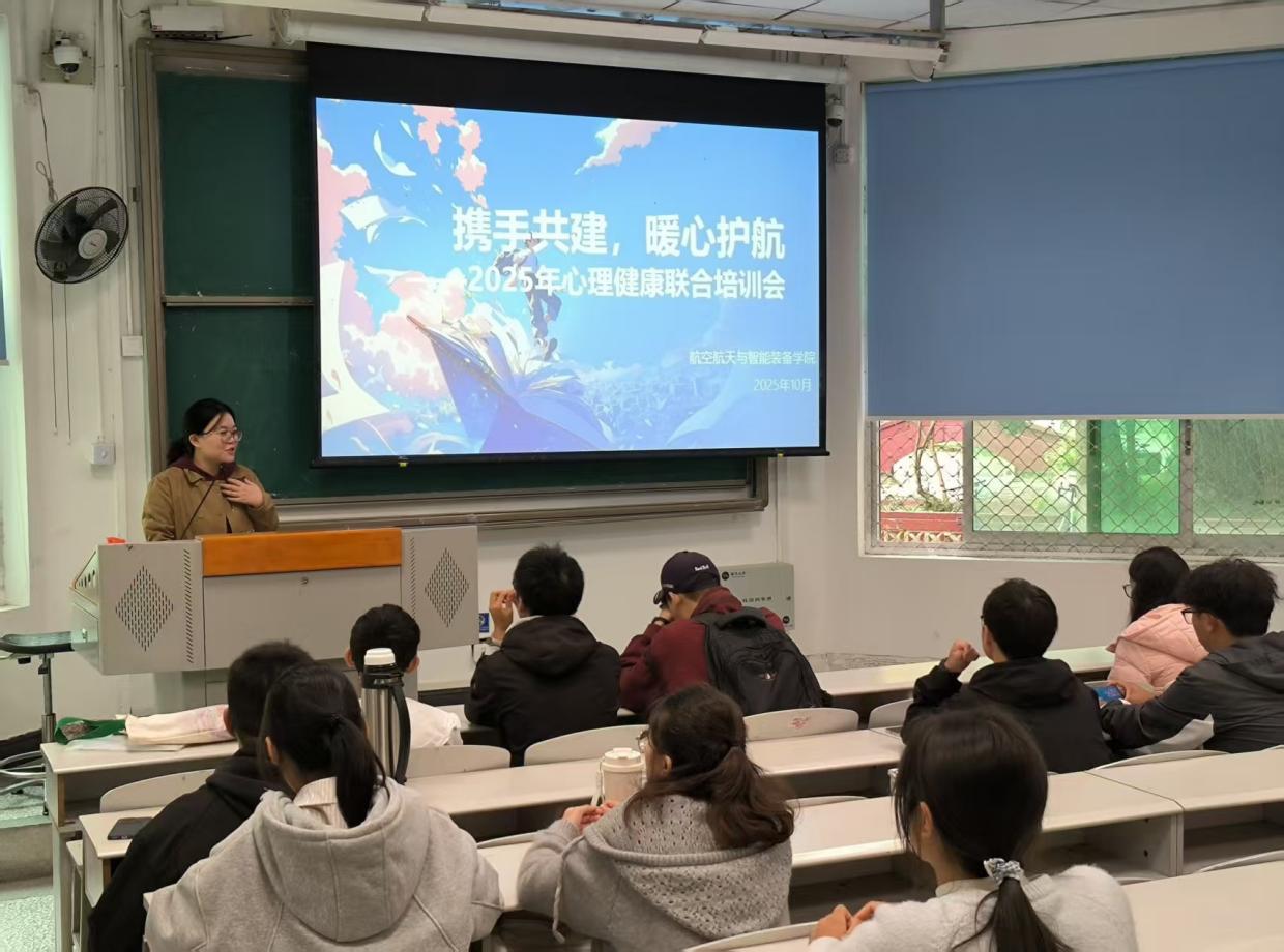 为筑牢校园心理健康安全防线,强化宿舍同学互助力量,帮助新生快速融入集体,提升学生心理关怀能力,2025年10月28日,西华大学航空航天学院组织大二心理委员与大一寝室长共聚一堂,由学院团委黄佳老师全程主持培训并分享经验。