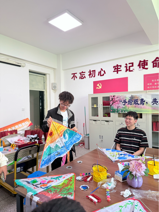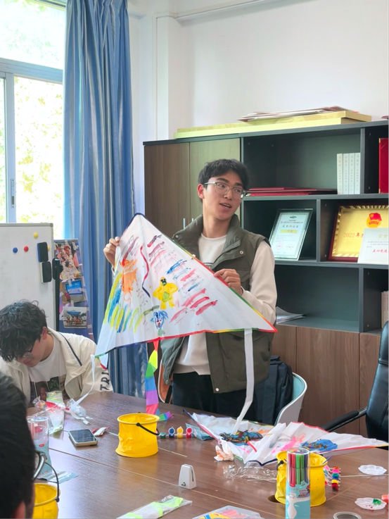 在DIY手绘创作环节,空白风筝、颜料、画笔等材料一应俱全。同学们充分发挥创意,无固定模板、不设统一标准,将春日意象、美好心愿与独特巧思融入笔下。现场氛围轻松热烈,大家专注勾勒、细心填色,一件件专属风筝作品陆续完成,尽显同学们的创意。