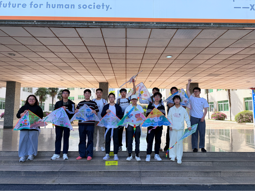 创作完成后,活动进入互动分享环节。同学们主动展示作品,讲述设计思路与图案寓意,分享藏在风筝里的心愿与祝福,在交流中碰撞创意、传递美好。随后,全体人员移步体育馆门口开启放飞体验,一只只承载心意与创意的风筝迎风而起,扶摇而上,在蓝天上自由翱翔。大家相互协助、欢声笑语不断,在奔跑与仰望中收获快乐与成就感。