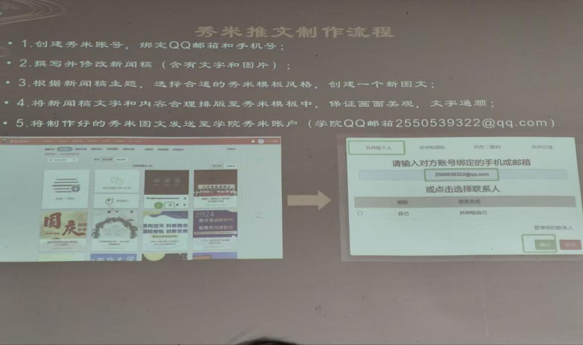 培训中,主讲人员结合校园宣传实例,采用"理论讲解+案例分析"的形式展开教学。针对PPT设计,重点分享版式布局与视觉优化技巧;在推文与新闻稿模块,详解标题拟定、结构搭建及语言规范;封面制作环节则同通过“可画”软件演示了推文封面及内容风格统一与重点突出的实用方法。现场互动频繁,学员们针对实操疑点积极提问,主讲人员逐一细致解答。
