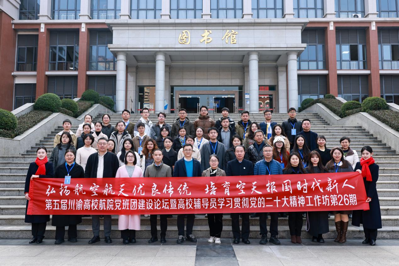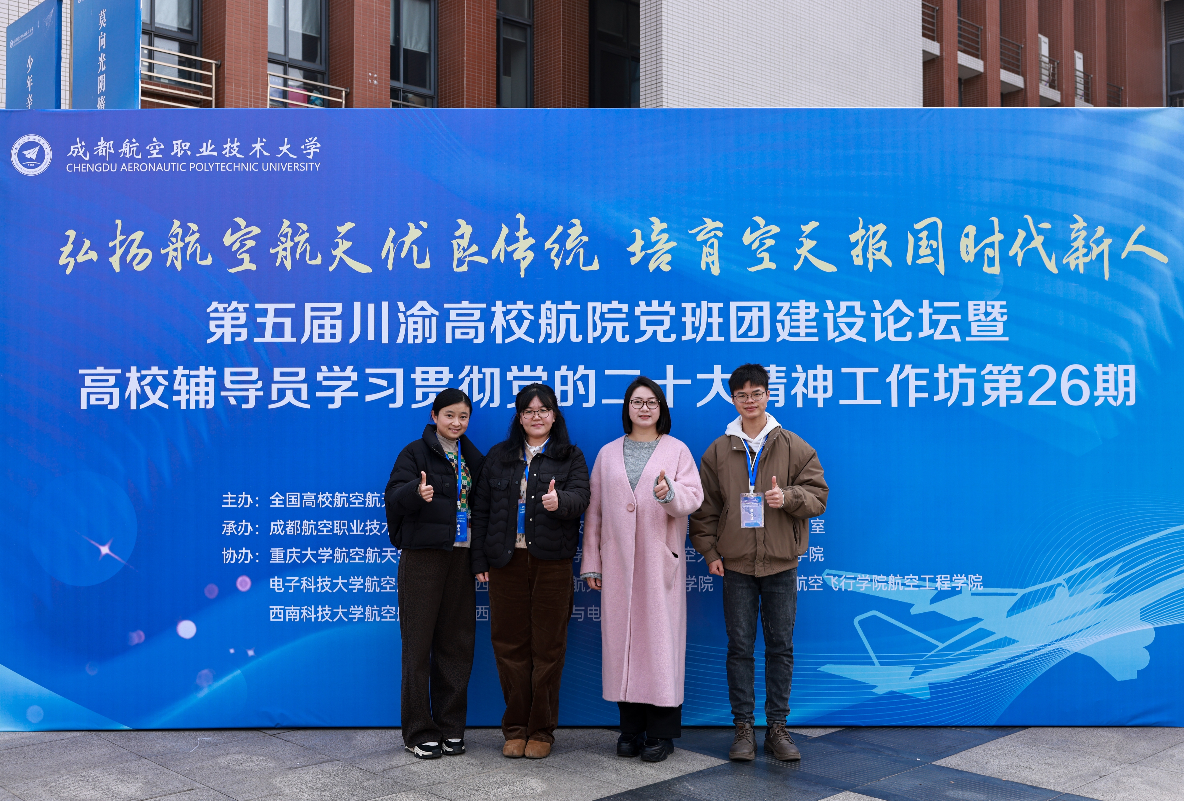 2026年1月10日,学院党委副书记余莎莎、全体辅导员应邀赴成都航空职业技术大学参加第五届川渝高校航空航天类院系党班团建设论坛暨第二十六期高校辅导员学习贯彻党的二十大精神工作坊。本次会议由全国高校航空航天类院系大思政联盟、成都航空职业技术大学主办,川渝高校航空航天学院联合承办。来自川渝地区10所高校航空航天类院系教育同仁齐聚一堂,共同探索思政工作与航空教育深度融合的实践路径。